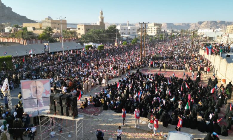 وادي حضرموت — شهدت مدينة سيئون، كبرى مدن وادي حضرموت، اليوم، فعالية جماهيرية حاشدة شارك فيها عشرات الآلاف من المواطنين، عبّروا خلالها عن رفضهم المطالبات بإخراج القوات المسلحة الجنوبية من المحافظة، مؤكدين تمسكهم بخيار الأمن المحلي وحق حضرموت في تقرير مصيرها ضمن مسار سياسي واضح.